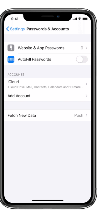 To add your account, go into the settings and choose the “passwords and accounts” option.
