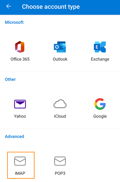 Select Imap or POP3 (for mobile devices we recommend IMAP)