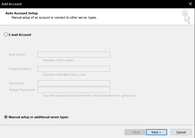 Select Manual setup then hit next