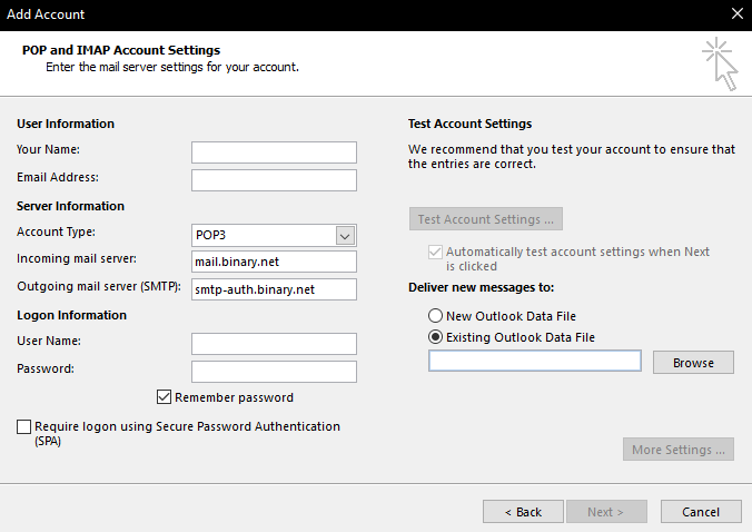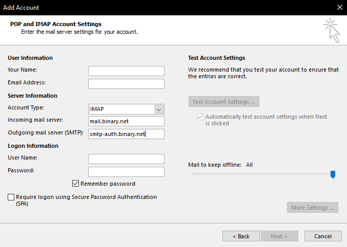 Incoming server: mail.binary.net