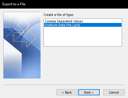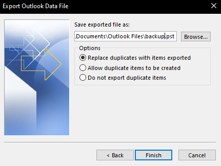 If outlook asks you to password protect your backup, press the OK button without entering a password.