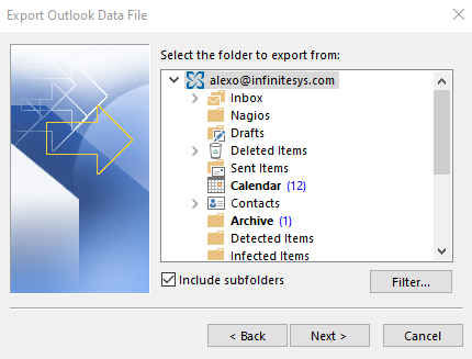 Before you make any changes to your existing email account, make sure you export the contents to a backup file.